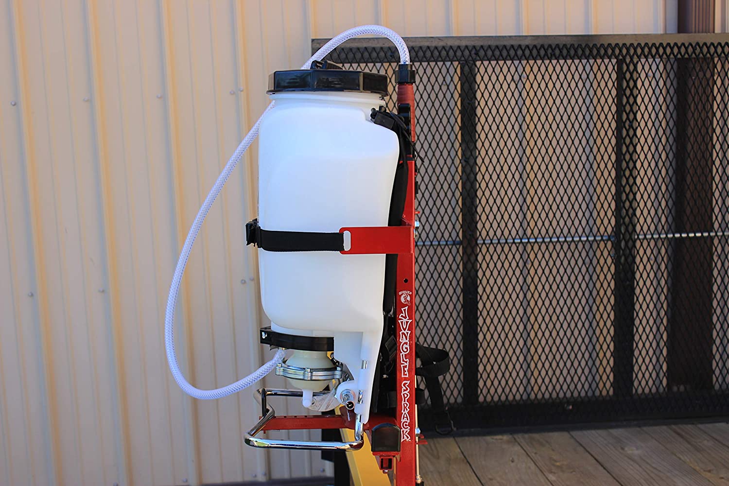 The Jungle Sprack mounts to your trailer and secures one backpack sprayer.