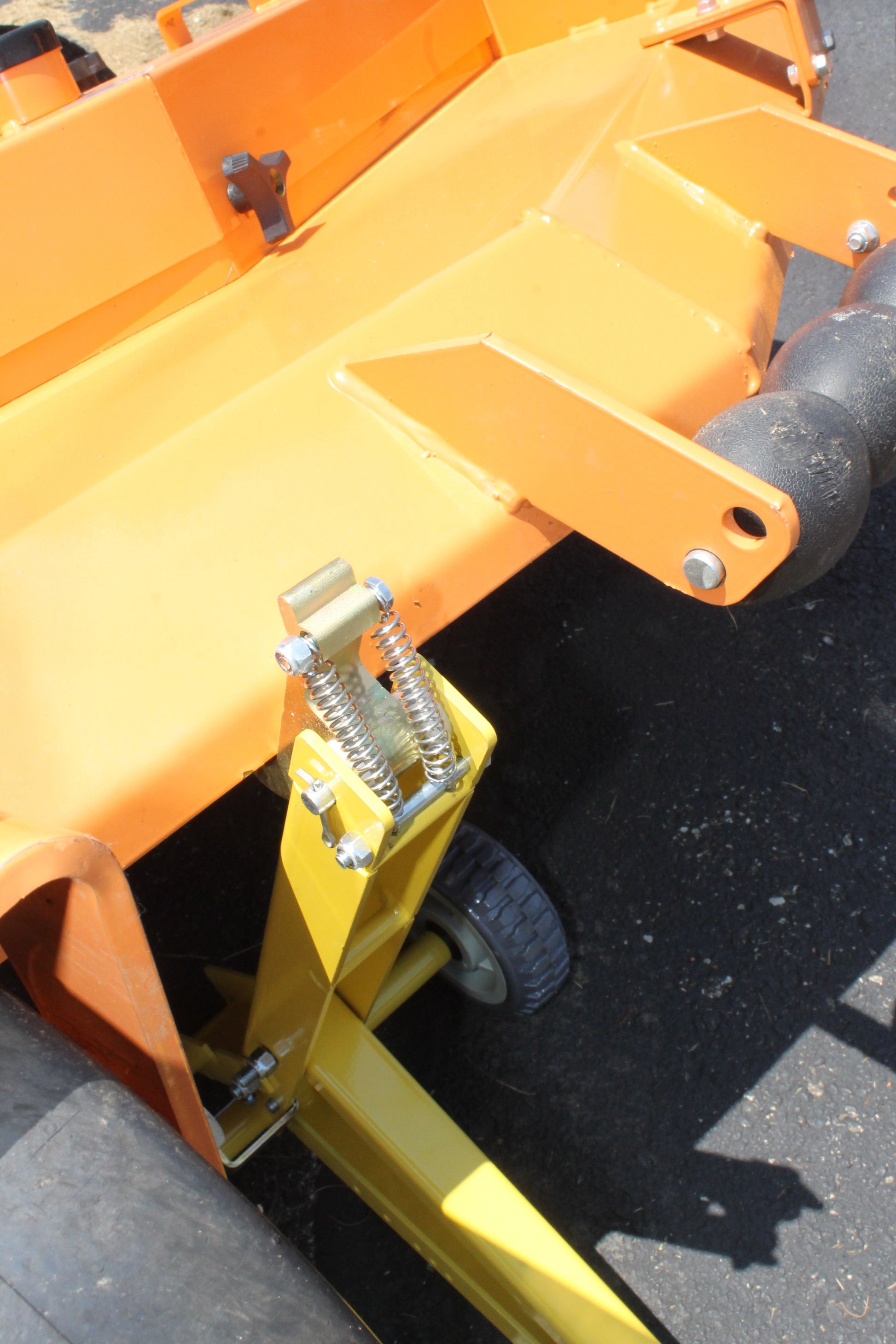 Q: I have a jd 930m with a 54 inch mulch on demand deck. i have wheels in the front center of my deck. Will this product work?